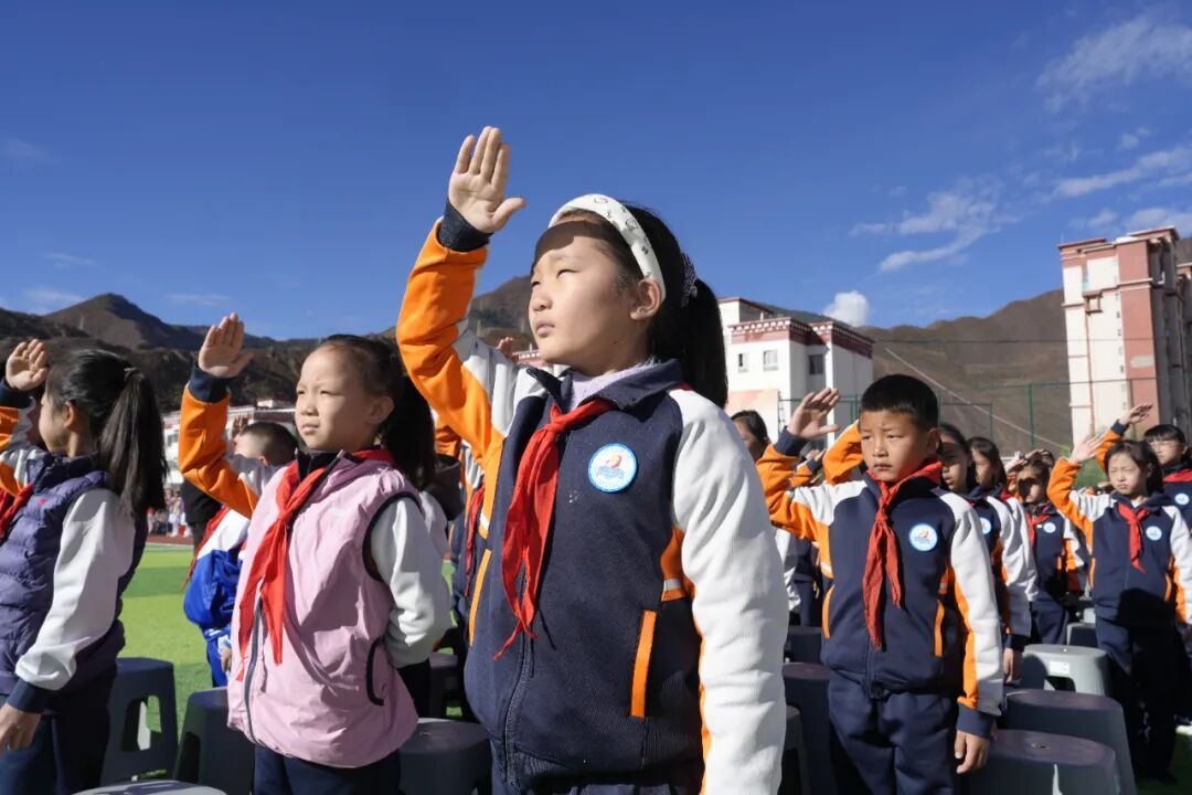 这是少先队新队员入队仪式现场。记者 群旦次仁  摄
