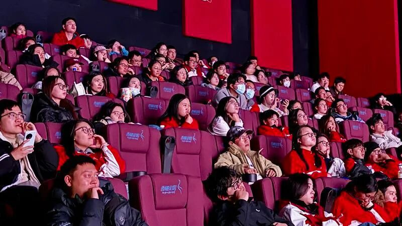 影院灯光暗下,银幕上缓缓展开普若岗日冰川的画卷。航拍镜头下,冰原脉络如大地肌理,羌塘草原在极端气候下呈现出粗粝而壮阔的质感。随着剧情推进,大学生童小凡在双湖的成长历程、汉藏干部与牧民的相互扶持、生态搬迁中的家国情怀……一幕幕真实而鲜活的场景铺陈开来。观影现场格外安静,只有影片中的风雪声与对话声回荡,不少观众被剧情牵动,时而悄悄擦拭眼角,时而因角色的坚守而神情凝重。当洛桑为救牦牛跌入冰窟的场景出现时,影院内响起轻微的叹息声,几位年长的观众悄悄红了眼眶。